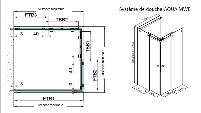 Douche AQUA PB 1000/1000/1000 mm