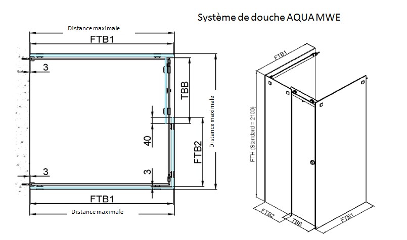 Douche AQUA PB 1000/1500/1000 mm U