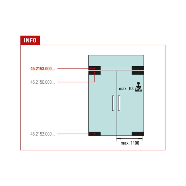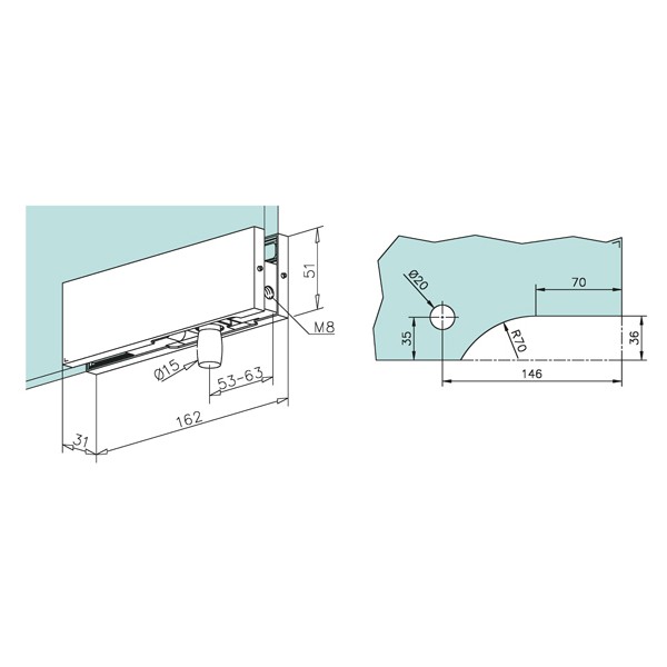Charnière inférieure pour porte battante verre, avec pivot, M8