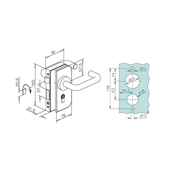 Serrure Toilettes ouverture béquille et cylindre euro pour épaisseur de verre 8 - 12 mm