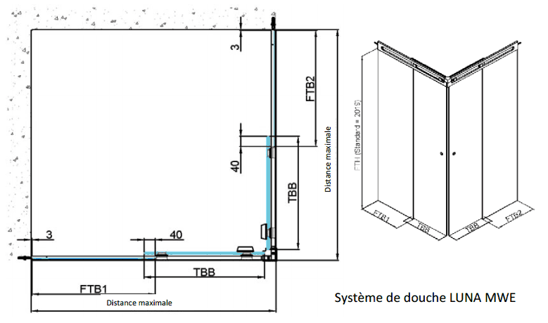 Douche LUNA PB 1500/1000 mm