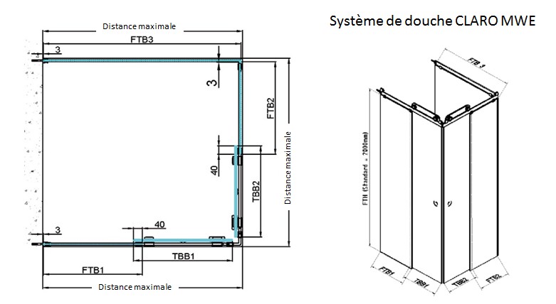 Douche CLARO PB 1000/1000/1000 mm